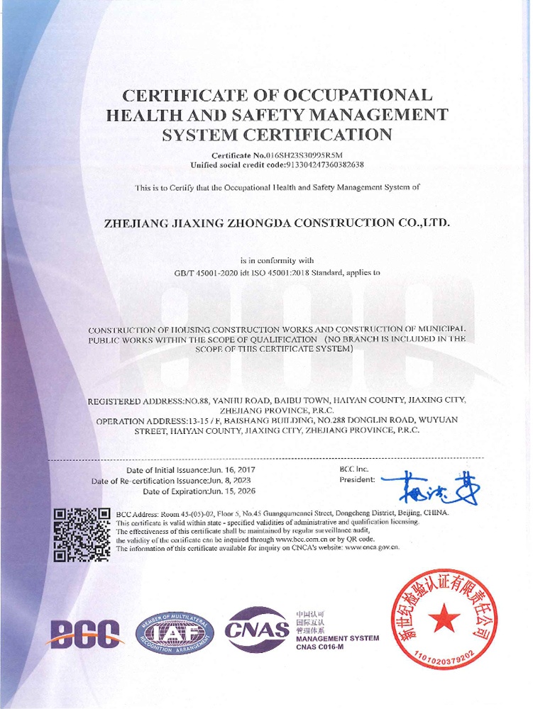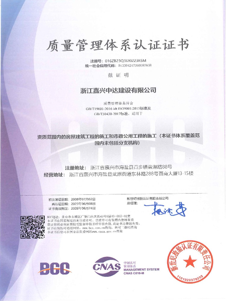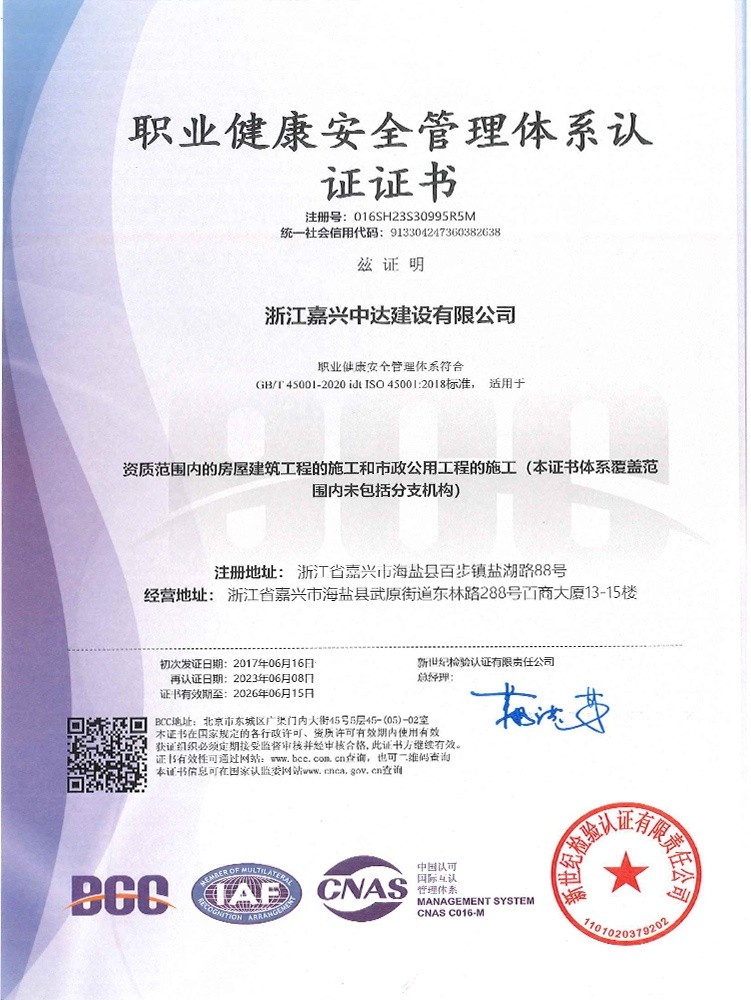公司始終堅(jiān)持“質(zhì)量為本、規(guī)范施工、遵紀(jì)守法、持續(xù)改進(jìn)”的管理方針,全面實(shí)施ISO9001、GB/T50430質(zhì)量、ISO14001環(huán)境和GB/T 28001職業(yè)健康安全體系標(biāo)準(zhǔn),提高現(xiàn)場質(zhì)量、安全生產(chǎn)、文明施工管理水平,積極推進(jìn)創(chuàng)優(yōu)奪杯活動(dòng),努力打造一流品質(zhì)工程,先后獲得了浙江省建筑安全文明施工標(biāo)準(zhǔn)化工地、浙江省智慧工地示范項(xiàng)目、嘉興市“南湖杯”優(yōu)質(zhì)工程、嘉興市建筑安全文明施工標(biāo)準(zhǔn)化工地等諸多工程榮譽(yù)。公司成立了嘉興市建筑企業(yè)技術(shù)中心,參編國家級(jí)行業(yè)標(biāo)準(zhǔn)、省級(jí)行業(yè)標(biāo)準(zhǔn),取得省級(jí)工法、發(fā)明專利、實(shí)用新型專利40余項(xiàng)。