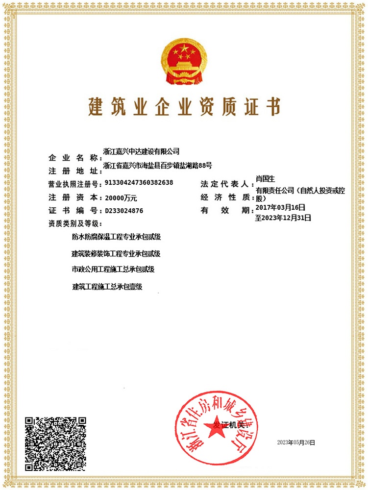 中達(dá)建設(shè)是中達(dá)集團(tuán)旗下子公司之一,辦公地址為海鹽縣武原街道東林路288號(hào)。公司具有國家房屋建筑工程施工總承包壹級(jí)、市政公用工程施工總承包貳級(jí)、建筑裝修裝飾工程專業(yè)承包貳級(jí)、防水防腐保溫工程專業(yè)承包貳級(jí)、機(jī)電工程施工總承包叁級(jí)等資質(zhì)。在逐年提升本土市場份額的同時(shí),公司積極開拓市外、省外市場,目前已在十余個(gè)省市區(qū)域設(shè)立分公司,業(yè)務(wù)范圍遍布浙江、上海、江蘇、湖北、江西等地。