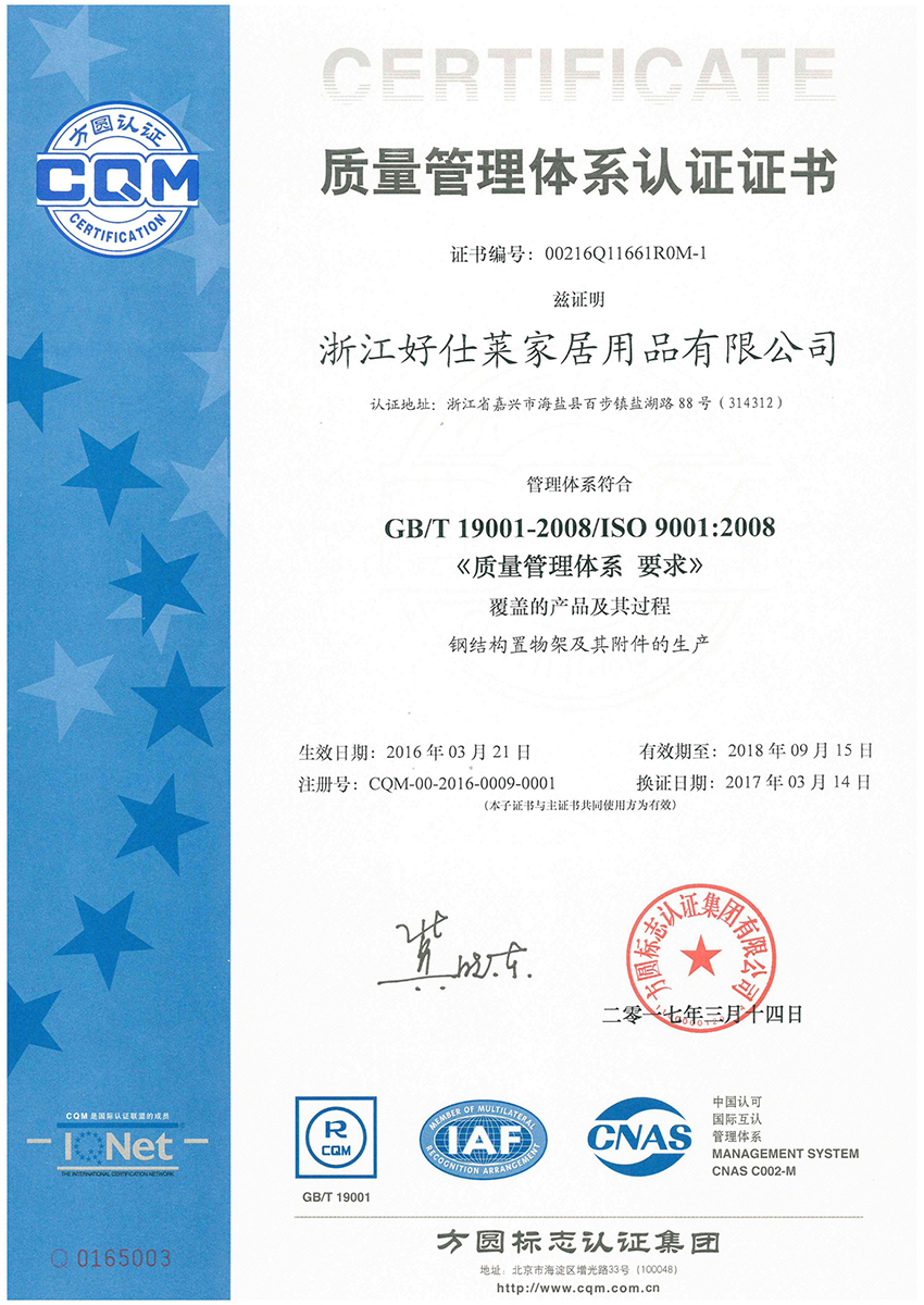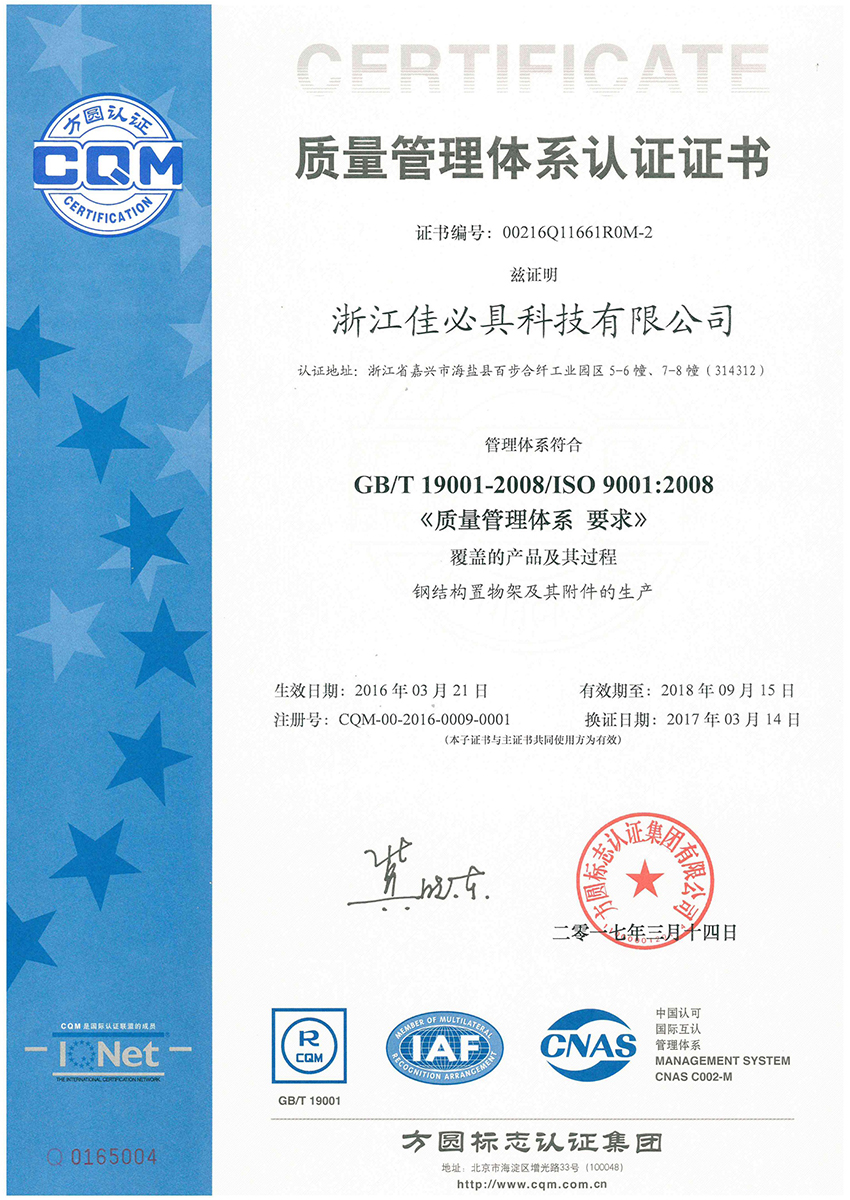 公司歷經(jīng)二十余年不斷開拓進(jìn)取,在貨架及倉儲(chǔ)物流設(shè)備和塔內(nèi)件裝備領(lǐng)域建立了獨(dú)特的競(jìng)爭(zhēng)優(yōu)勢(shì),在業(yè)界樹立了良好的聲譽(yù),并擁有“HOMUST佳必具”和“中達(dá)智能倉儲(chǔ)”兩大自主品牌。公司通過了質(zhì)量、環(huán)境、職業(yè)健康安全管理體系認(rèn)證,以及歐盟CE、美國NSF、FSC、BSCI、SMETA、SEDEX和FCCA等認(rèn)證。
