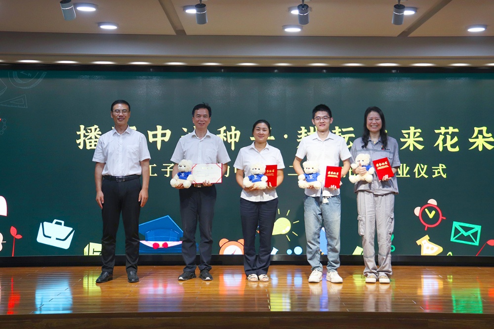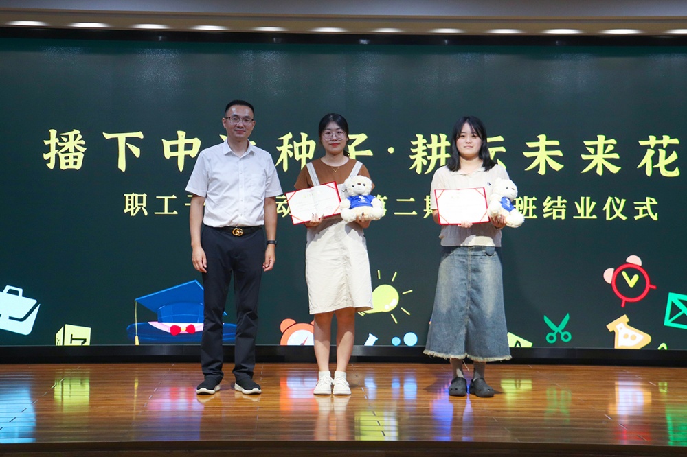 隨后孩子們依次上臺(tái)領(lǐng)取結(jié)業(yè)證書,與家人共同見證了這一值得紀(jì)念的時(shí)刻?;顒?dòng)中還表彰了倪宸好、宋琪等兩位優(yōu)秀志愿者老師,金燁、姚利超、馮岳明、王林靜等四位黨工團(tuán)婦優(yōu)秀值班人員。