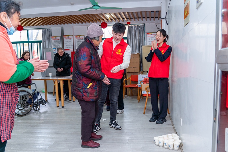 在活動正式開始前,集團(tuán)以及各子公司青年志愿者們提前來到百步敬老院,對游戲場地作了精心布置,并滿懷熱情迎接老人們前來參加活動。“沾紙杯投球”“翻翻樂”“投壺”“水瓶快跑”“默契挑戰(zhàn)”等系列趣味游戲,形式多樣、輕松好玩,給老人們增添了許多快樂,也增強(qiáng)了青年員工與老人們的交流互動。